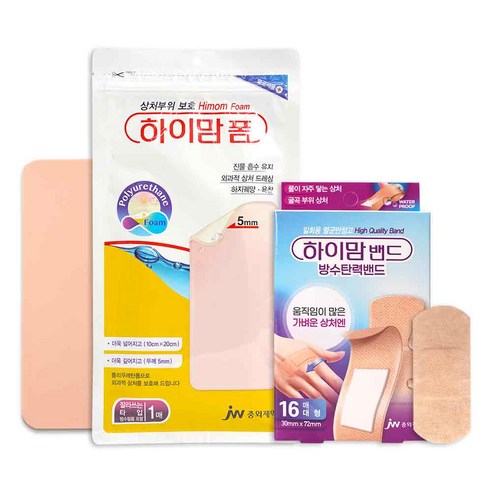 여러분의 가정용 응급 처치 키트에 필수적인 두 가지 필수품이 만났습니다! 하이맘밴드 방수탄력밴드 대형 16매와 하이맘폼 10x20cm 5mm 1매가 특별 할인된 가격으로 함께 소개됩니다.